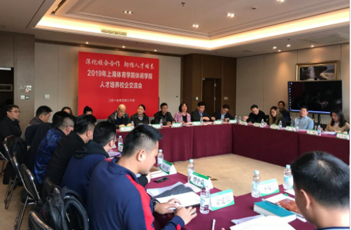 上海市跳绳协会、上海市登山户外运动协会、上海旱地冰球协会、圣巴(上海)文化传播有限公司、上海尚体体育发展有限公司、上海巅峰体育管理股份有限公司等20余家行业协会、企业单位负责人参加会议。休闲学院院长王红英、党总支书记霍圣录、休闲学院副院长刘树军、各专业团队负责人、教师代表参加交流会。会议由党总支副书记王丽娜主持。