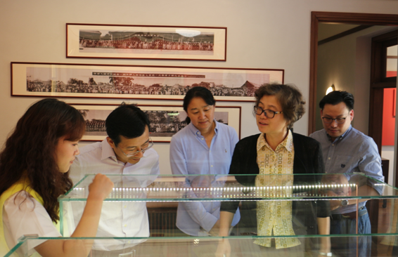 陈先生的故居共有三层,其中,故居一层以“宣言中译,信仰之源”为主题,陈列台展示了1920年出版的首版陈望道中译本,再现了承印首版《共产党宣言》中译本的又新印刷所,还专门辟设版本厅,用以安置从坊间搜罗的部分宣言版本。我院教职工认真观摩陈先生的译本,感受其对共产党宣言翻译工作的认真与恒心。