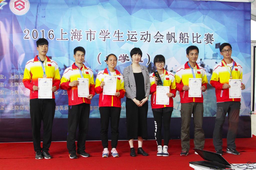 10月23日,2016年上海市学生运动会首届大学组帆船比赛在上海临港滴水湖举行。我院帆船队由体育休闲与艺术学院副院长刘树军、王健清老师作为领队、教练,以及来自休艺学院、武术学院的六名本、硕运动员组成,经过三轮激烈的角逐,勇夺季军。