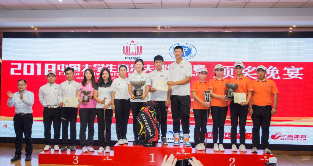 在超级组的团体赛中,我校运动员通过共同努力,最终以总杆数709杆(领先第二名深圳大学4杆)的成绩夺得冠军,为我校夺得该赛事的第一个团体冠军。