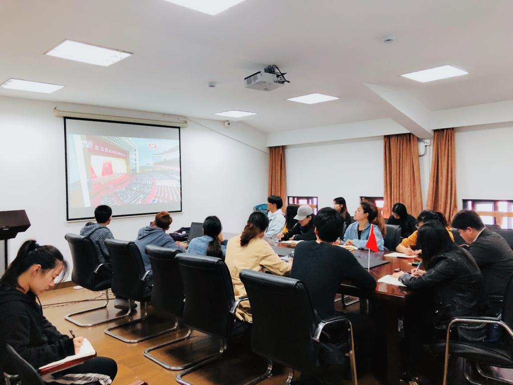 4月30日上午,学院团总支书记李文阁、研究生辅导员孙一可、18级辅导员丁浩及学院青年学生代表在休闲学院3308会议室共同观看了纪念五四运动一百周年大会。中共中央总书记、国家主席、中央军委主席习近平出席大会并发表重要讲话。