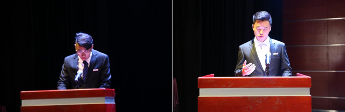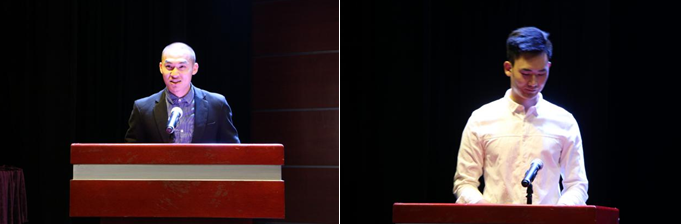 随后,休闲学院第一届学生会主席刘光泉及第一届研究生会主席团代表周为强分别进行了发言。刘光泉在回顾上一年的学生会工作的同时表达了对学院、老师以及同学的感谢,并代表新一届学生会成员,表示一定会尽职尽责,发挥好学生会的作用。周为强通过叙述研究生会下学期的工作计划表明了研究生会主席团将带领研究生会成员再创佳绩的决心,赢得了大家热烈的掌声。