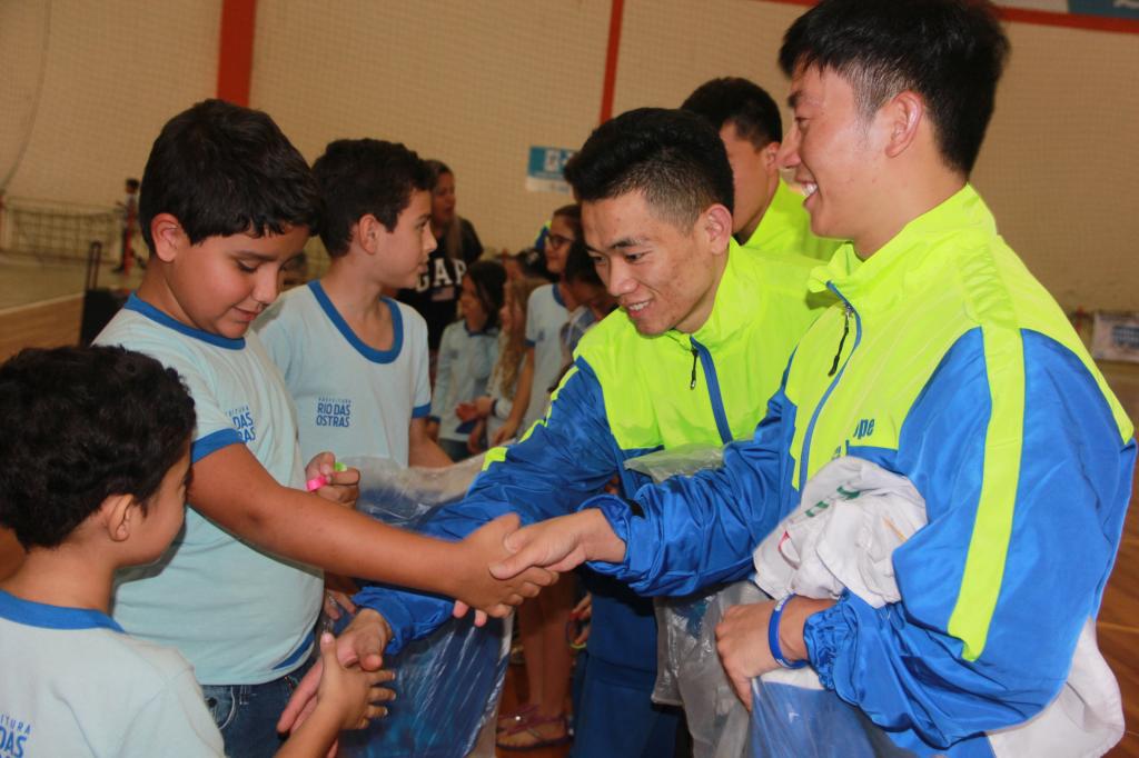 8月3日下午,里约达斯奥斯特拉斯(Rio Das Ostras)市长Rrefelto先生亲自接见了奥运跳绳表演团所有队员,Rrefelto市长与队员进行了1个多小时的座谈,在座谈中Rrefelto先生表达了对火炬传递精彩表演的肯定,对在里约推广花样跳绳运动非常感兴趣,并邀请跳绳队到当地中小学开展推广活动。座谈会后,Rrefelto先生为表演团全体队员颁发了奥运火炬传递纪念证书。