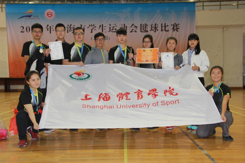 2016年10月29日至30日,上海市学生运动会毽球(大学组)比赛在上海第二工业大学落下帷幕,我校毽球队面对实力强劲的对手,顽强拼搏,敢于争先,经过激烈角逐,勇夺男子团体赛亚军、男子双人赛亚军、计数赛第六名,为我校争得荣誉。本次比赛由来自上海交通大学、华东政法大学、华东理工大学、东华大学、第二工业大学等十二所高校的116名运动员参加。