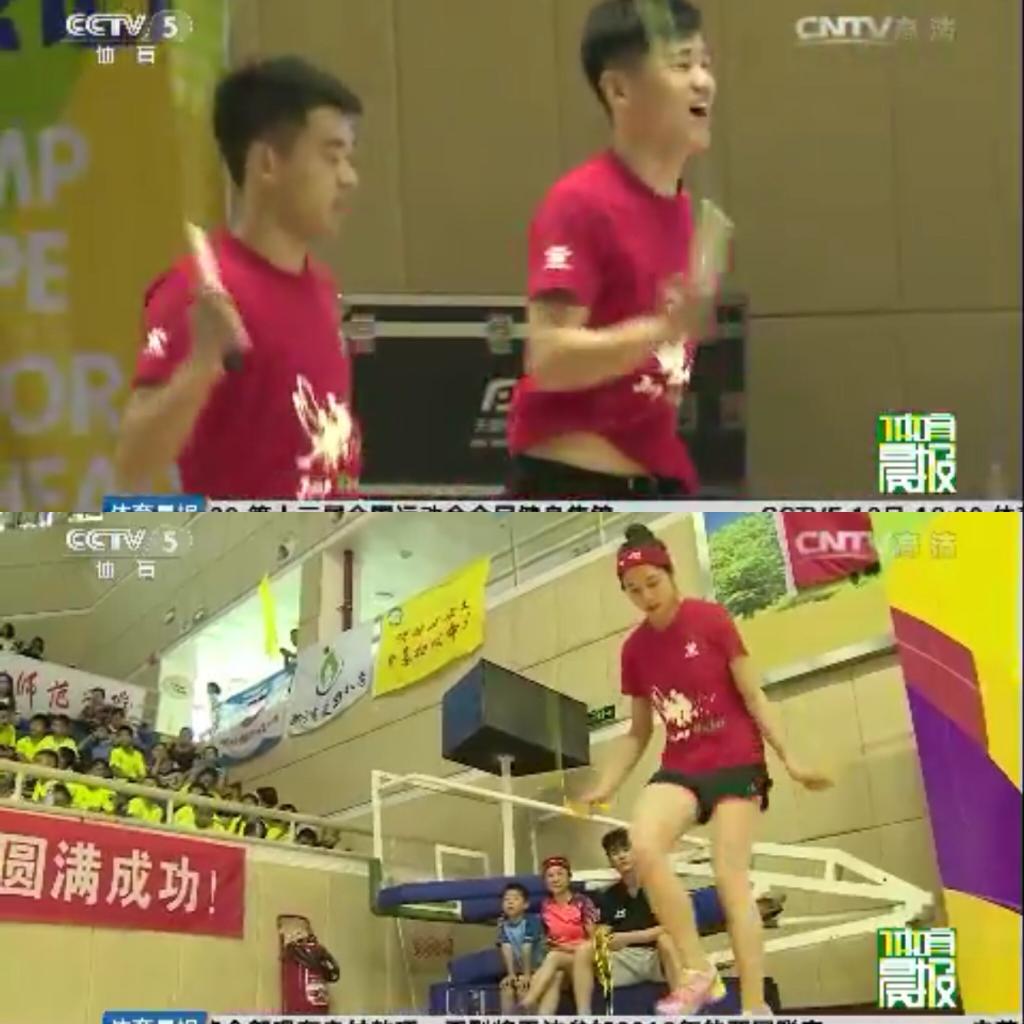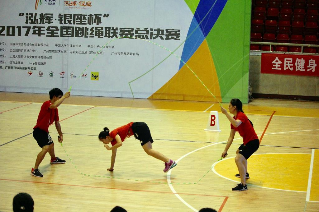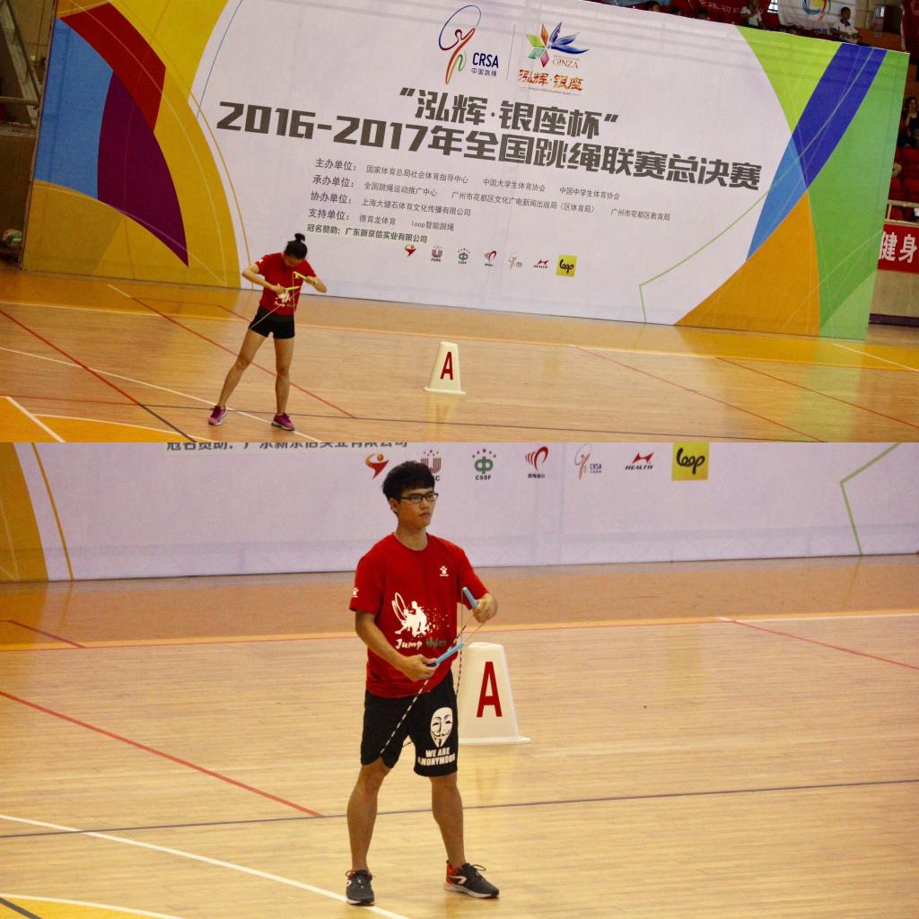 7月8日至13日,由国家体育总局社会体育指导中心、中国大学生体育协会、中国中学生体育协会联合主办的2017年全国跳绳联赛总决赛在广州花都体育馆隆重举行。由休艺学院和体教运训学院13名队员(李时兴、郭思化、韦冬玲、韦冬妹、吴丹、王小艳、陈晨、徐发光、李高杰、韦坤、吴凯文、黄传监、陈坤美)组成的花样跳绳院队以休艺学院副院长刘树军教授为领队、韩耀刚老师为教练,经过4天的激烈角逐,共斩获6枚金牌(3分钟速度、个人花样、两人同步花样、车轮绳花样、交互绳花样、集体自编)。我校具有创意性的花样赛成为赛场亮点,赢得现场观众热烈的掌声,我校学生比赛的精彩镜头在CCTV5体育新闻中播出。同时刘树军教授被组委会邀请担任仲裁,韩耀刚老师担任裁判长。