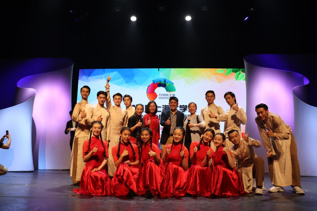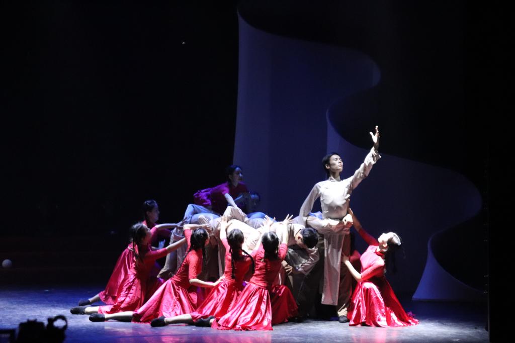 当晚展演分为四个篇章,分别是红色青春励志成长、经典呈现思考人生、创新超越别出心裁,以及不忘初心继续前行。共包含三个舞蹈类作品和四个戏剧类作品片段。其中我校优秀原创群舞作品《青年说》受邀作为晚会第一篇章节目汇演,引发了现场观众热烈反响。作品将体育舞蹈动作素材与中国舞技术技巧巧妙融合,以中共一大这一历史事件为源头,立足于回望历史、汇聚民心、传承精神的爱国主题。从“先驱者”的回眸到当下青年学子的“仰视”,表现了中国共产党精神在历史的长河中,绵延不息、代代传承。