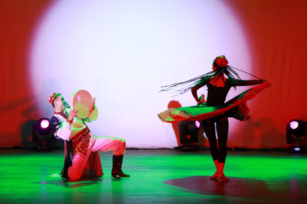 本次晚会以“忆五•艺舞”为主题,寓意着15级舞编学生对大学生活的回忆与对未来舞蹈艺术之路的美好期许。晚会中共有三个篇章,第一个篇章“往昔风华”,开场舞《燃烧的地板》同学们以激情的恰恰、桑巴、充满异国情调的伦巴、跳脚、爵士、摇摆等风格的舞蹈展示了精湛的专业技能;集体舞《梦里人》讲述的是一群年轻的舞者在追逐梦想道路上所发生的故事,即使梦想被现实所打败,但他(她)们依旧无所畏惧,勇往直前。故事里更有优秀的双人舞《一个陌生女人的来信》一个女人在她生命的最后时刻,饱蘸着一生的痴情,写下了一封凄婉动人的长信,向一位著名的作家袒露了自己绝望的爱慕之情,展现出了爱的深沉与奉献。;第二个篇章“展望未来””,双人舞《花朵》,轻快活泼,服装艳丽,姑娘与小伙儿们性情热情奔放,怀揣着一颗对未来生活的美好向往的心。群舞《情•义》四位舞者向我们展示人生路上,亲情和友谊,让我们感受到无比的温馨和安慰。群舞《谁•迷》舞者们展示在迅速发展的时代,如何战胜自己的迷茫,群舞《我等你》6位可爱的姑娘用优美的舞姿和饱满的真情向观众展示一个军嫂用实际行动无怨无悔的辛劳撑起军人的家。第三个篇章“放飞梦想”是体育舞蹈技能技巧展示,有雍容华贵的华尔兹舞、铿锵有力的探戈舞、古典悠扬的维也纳华尔兹舞、行云流水的狐步舞、欢快活泼的快步舞、热情奔放的桑巴舞,展示了体育舞蹈特有风格与魅力。学生们更是以专业的技能和优美的舞姿深深的表达了对大学生活的不舍、青春的怀念和对未来的美好憧憬以及对老师和学校的培养之恩!整场演出精彩缤纷,在轻快的音乐《栀子花》中落下了帷幕。观众们以雷鸣般的掌声和欢呼声对本场演出给予了高度的认可。