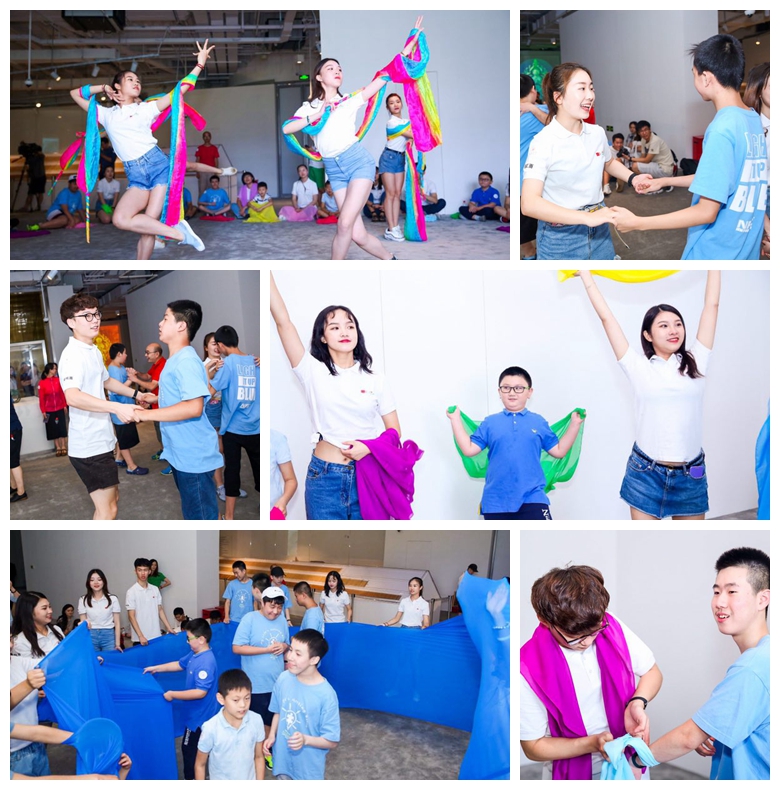 7月23日上午,中国第一高楼上海中心大厦举办的丝路敦煌文化艺术展迎来了一批特殊观众,几十名来自上海市彩虹雨儿童智能训练中心的自闭症儿童在休艺学院“星希望”自闭症儿童舞蹈治疗暑期社会实践志愿者们的陪同下,共同参与“幸福生存-丝路敦煌公益融合夏令营”,感受丝绸之路敦煌文化的魅力。