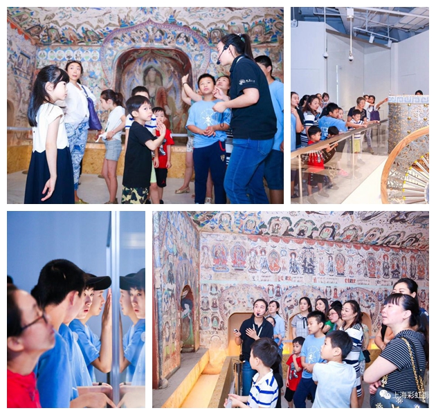 三座运用现代技术等比例复制的敦煌洞窟,均为敦煌文化宝库中极具代表性的精华洞窟。自闭症儿童和舞蹈治疗志愿者们一起,观赏了包括著名的马踏飞燕在内的一百多件古丝绸之路文物精品。