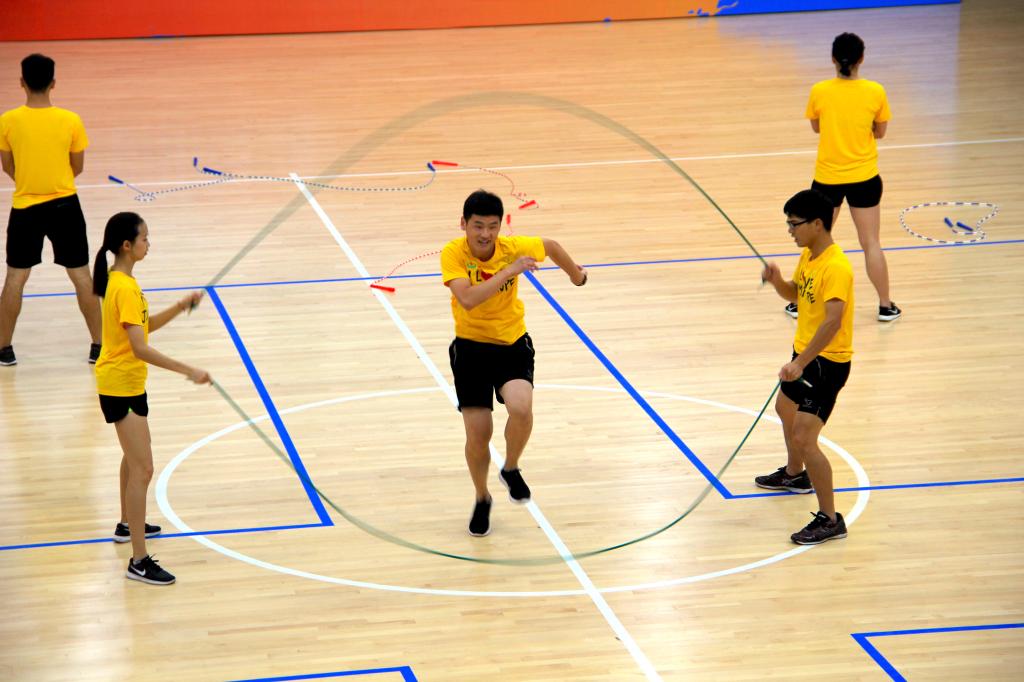 花样跳绳队自接到市运会任务以来,韩耀刚教练根据竞赛规则及队员水平制定了周密的训练计划,并带领队员们充分利用暑假、双休日以及晚上的课余时间开展集训。备战期间,教务处训竞科、教学训练保障中心等单位给予了大力的支持,休艺学院党总支书记刘明生、副院长刘树军、副书记副院长王丽娜等亲临训练场地慰问队员,鼓舞士气。比赛当天,训竞科朱昆老师亲临比赛现场助阵。