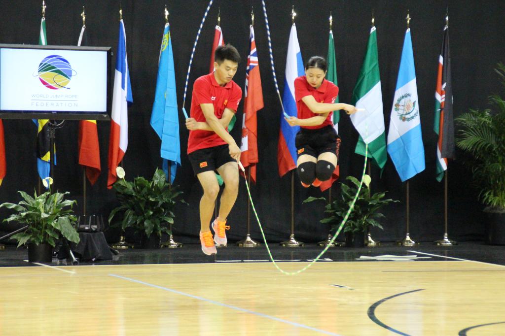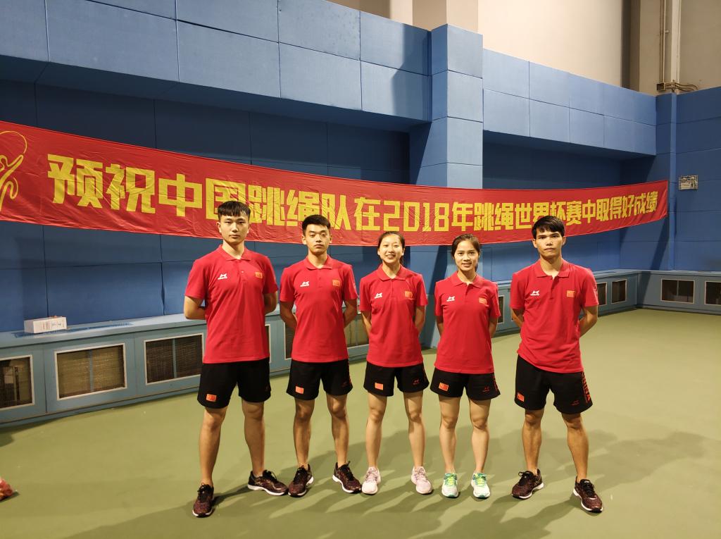 2018年跳绳世界杯比赛于北京时间7月2日晚20:00在美国奥兰多中佛罗里达大学举办。本次比赛吸引了全球29个国家和地区、近80支队伍、800余名运动员以绳会友,同场竞技。我校郭思化、陈晨、李高杰、黄传监4人与跃动跳绳俱乐部谢长磊(14届校友)、韦冬玲(18届校友)2人共6人入选中国国家队。我校花样跳绳队郭思化、李高杰在车轮跳项目中经过预赛、决赛的激烈竞争,最终凭借整套零失误的完美发挥夺得冠军。