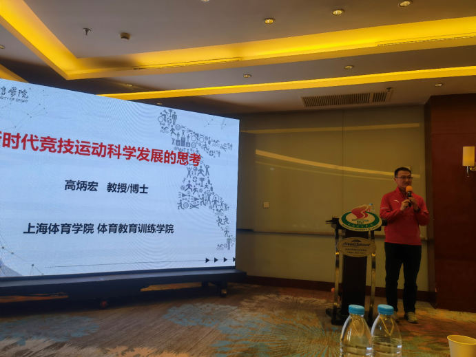 上海体育学院体育教育训练学院院长高炳宏教授就对竞技运动科学的理解与发展为主题进行了报告。在报告中高炳宏教授指出技术、心理调控、身体能力是竞技能力的三驾马车,“三驾马车“的有机统合才能有效提高运动员的竞技能力,并提出未来竞技运动科学发展中,应全面改善基础体能,依据儿童青少年生长发育特点树立运动能力长期发展思想,并且形成从单一学科到多学科、复合型科医团队联合科技助力新模式。