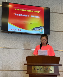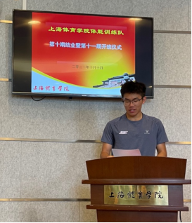 第十期体能训练队刘晓佳作为优秀学员代表进行发言,去年3月,通过层层选拔的第十期队员们带着期望与憧憬开启了体能训练的学习之路,整整一学期的学习与训练让每一位队员都受益匪浅,相信上体体能人必定会秉持着竞攀精神继续前进,在体能的路上发光发热,不负学校和上体体能的栽培。
