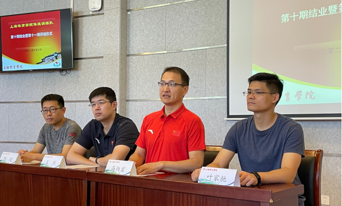 10月10日上午,上海体育学院“上体体能”训练队第十期结业仪式暨第十一期开班仪式在体训学院1111会议室顺利举行。体育教育训练学院院长高炳宏、竞技运动与体能训练教学团队带头人王然、第十期体能训练队指导教师陈超、第十期体能训练队班主任杜超、叶家驰出席仪式。仪式由杜超主持,第十期和第十一期体能训练队全体队员参加活动。