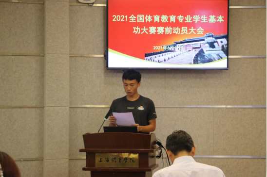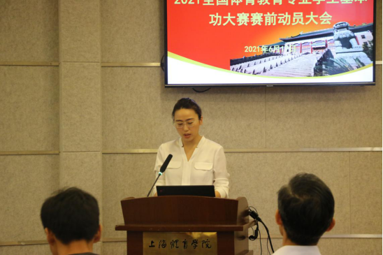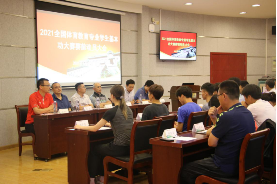 6月17日,体育教育训练学院于1111会议室召开了2021年全国高校体育教育专业学生基本功大赛赛前动员大会。上海体育学院副院长唐炎、教务处处长邵斌、训竞处处长邵春、体训班子成员、基本功大赛指导教师及8名参赛学生参加了会议。会议由体训学院党委书记徐烈主持。