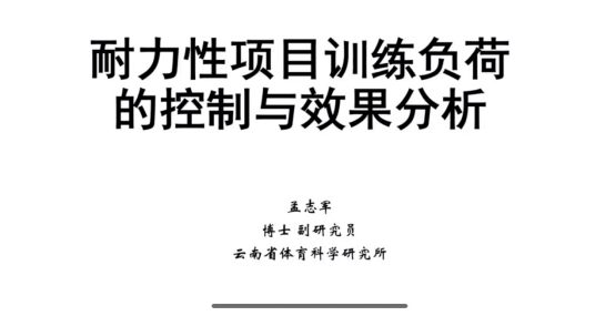 12月15日,云南省体育科学研究所孟志军博士以《耐力性项目训练负荷的控制与效果分析》为题进行授课。孟志军博士从耐力项目的训练效果,训练负荷和科学地控制训练负荷进行讲解,他强调:“有效地训练负荷评价有助于我们更好的理解运动应答降,低过度训练的伤病风险。”未来,教练员可以用多种指标综合评价训练负荷对机体的影响,也可以用大数据管理平台对运动员进行系统全面的训练负荷控制,而无创设备和便携设备(GPS/近外红等)也会被广泛的应用,为教练员指导训练提供广阔的思路。