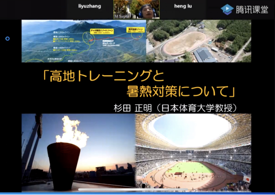 12月16日,日本体育大学杉田正明教授以《高地训练和关于暑热对策》为题进行授课。课程开始,介绍了部分高原训练基地,例如:中国的云南昆明和青海多巴,随着设施的完善,低氧帐篷的训练模式逐渐增多。本次课程着重讲解了高原训练的三种分类方式,分别是:在平原生活,在高地上进行训练;在高原生活,在高原训练;在高地上生活,在平原训练。最后,杉田正明教授阐述了如何利用冷水浸泡提高运动表现,为教练员提供了最科学的高原训练方法。