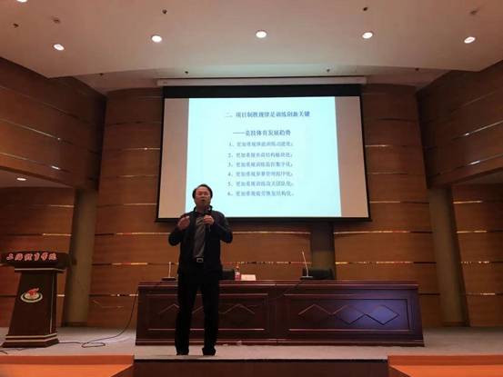 袁守龙博士从以下4个方面阐释了本次讲座的主题:一是负荷本质是训练新理念源头;二是项目特征规律是训练创新关键;三是优秀教练员创新实践案例与分型;四是备战奥运会训练实践创新与建议。袁博士指出:“做体育的要坚持终身训练!有氧是主线,力量是关键,拉伸是再生,平衡协调抗衰老。要从自己的健康出发,来去唤醒周边的人,来去指导周边的人。”