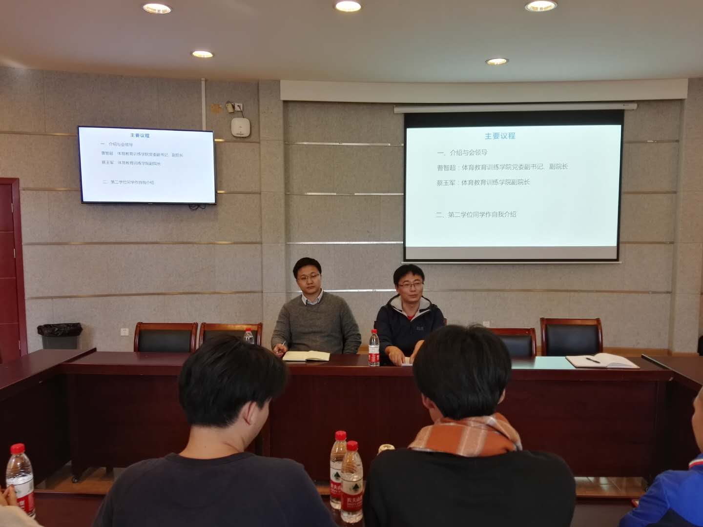 114日下午,体育教育专业第二学士学位学生座谈会在1111会议室召开,体训学院党委副书记、副院长曹智超、副院长蔡玉军与第二学位学生共同参加座谈。