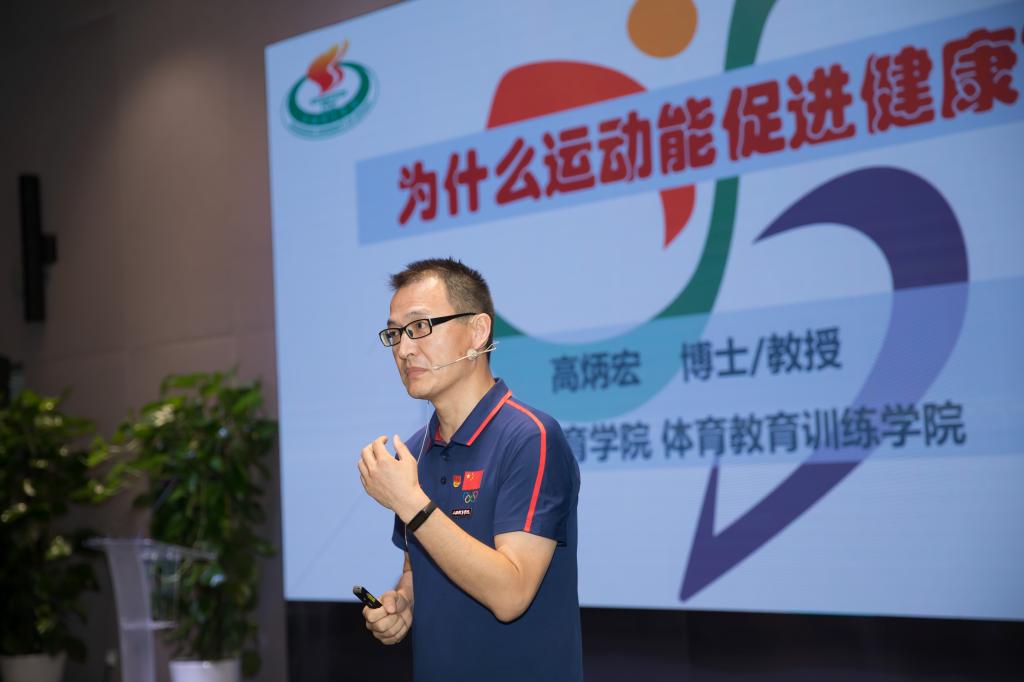 上海体育学院体育教育训练学院院长高炳宏为“运动健康大讲堂”做了题为《为什么运动能促进健康》的精彩首讲。