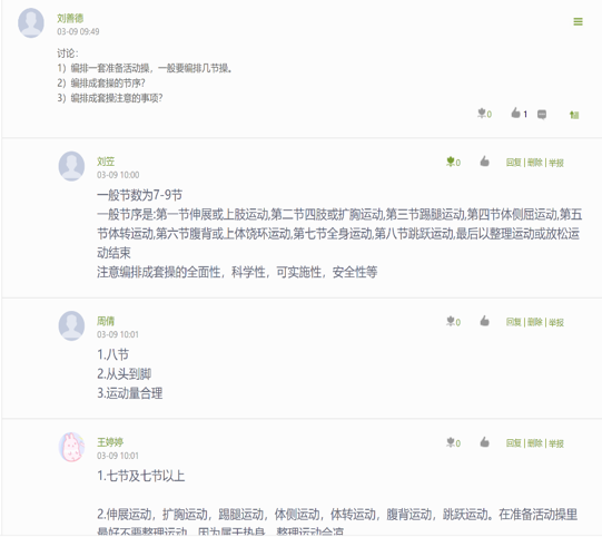 教师在线上教学平台上发起主题讨论,学生踊跃参加讨论,教师予以回复和点评,引发学生共鸣,互动交流取得良好的效果。