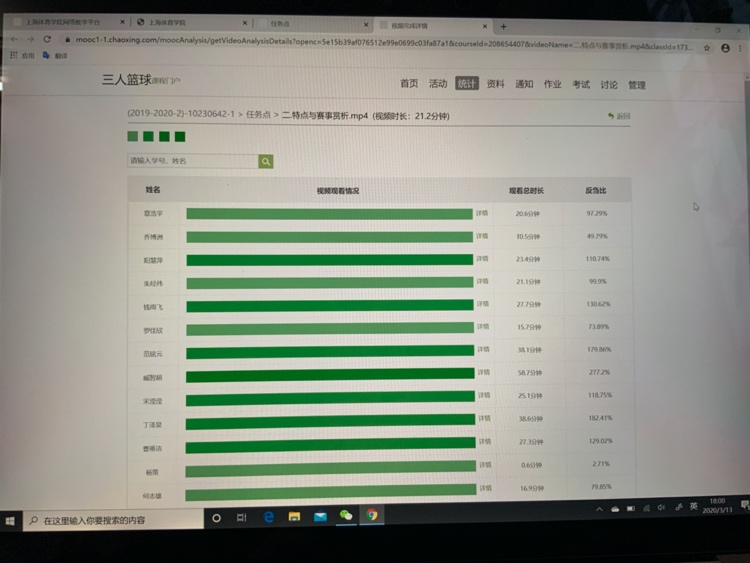 2月15日,体训学院结合学校部署制定了“2020学年春季学期本科教学工作实施方案”,并在次日召开了教学工作会议,对在线教学的课程安排、组织实施等做了详细的工作部署。根据教务处下达的教学任务,各课程团队经过约半个月的努力,通过了2月27日的线上教学测试,早早准备好两周的教学内容,并提前一周将教学资源上传到了课程平台。
