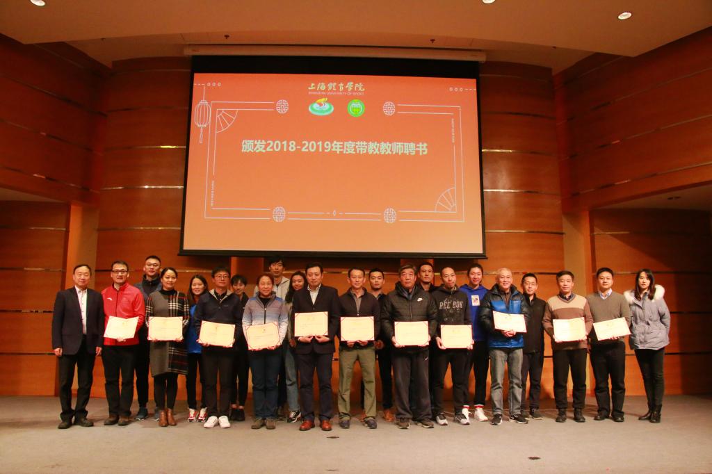 为切实提高师资队伍教学水平,帮助新进教师得到快速成长,传承高尚师德,潜心立德树人,学院聘请吴雪萍、邵斌、徐烈等优秀教师作为带教教师一对一指导我院2018-2019年度11位新进教师,本次会议为2018-2019年度的11位带教老师颁发了聘书。新进教师代表陈超老师发言,他表示十分荣幸成为上海体育学院教师团队的一员,愿在带教教师的指引下,努力提高执教能力,学习体训人拼搏向上的竞攀精神,为学院建设舔砖加瓦。