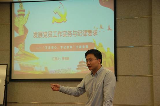 党总支副书记、副院长曹智超以“发展党员工作实务与纪律要求”为党课主题,严把党员“入口关”。曹智超为大家详细地解读了发展党员的详细流程和具体要求,并通过罗列案例的方式来警示大家在发展党员过程中可能会出现的错误。他提出,发展党员工作是学院党建工作中的一个非常重要的组成部分,也是学生工作中的一项日常性工作。每一位党支部书记和辅导员都肩负着发展党员工作的责任,应该熟悉和掌握发展党员的有关政策规定和工作程序,而且还要重视研究发展党员工作和大学生思想政治教育工作之间的关系,进而做好党建育人和组织育人工作。