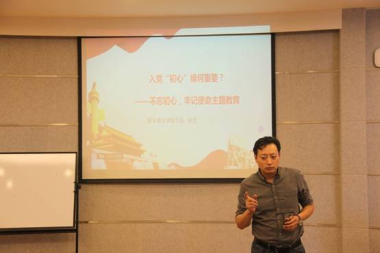 党总支书记徐烈以“入党初心缘何重要”为党课主题,以什么是正确入党动机为切入点,从信仰、初心和榜样三个方面举例说明入党动机的重要性。他指出,只有不忘记自己的最初发心,才能持之以恒,坚持不懈,善始善终。作为共产党员,不忘初心,就是要坚定党员的理想信念;要增强党员的意识观念;要牢固党员的宗旨;要规范党员的纪律作风;不断提高自身素质和修养。