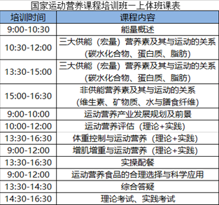 该培训认证课程是由中国食品科学技术学会运动营养食品分会开发的课程,在业内具有极高的认可度。本课程主要目的是,让每位学员都能掌握使用运动营养知识与技能,为自身和目标群体制定个性化运动营养计划,提升自我及目标群体健康水平及训练效果。相关报名信息与要求具体如下: