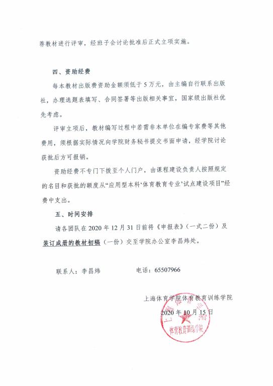 关于2020年上海体育学院体育教育训练学院本科教材出版资助的通知.pdf
