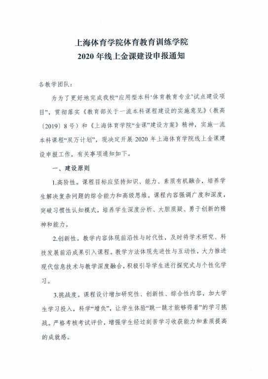 2020年上海体育学院体育教育训练学院线上金课建设申报通知.pdf